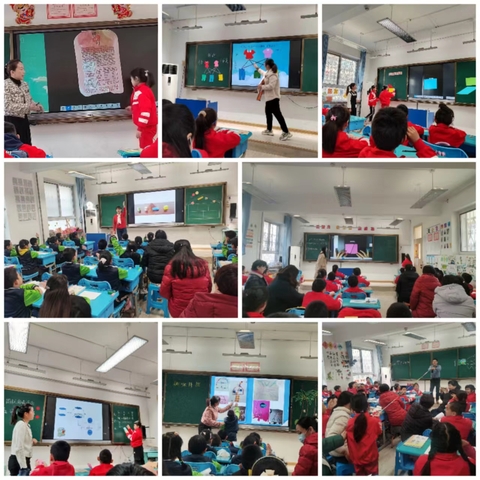 数学组孙淑燕、卢宪菊、汪飞飞、李春霞、姚继芳、闫园园和梁波、冯成桢等老师带来了《平面图形》《趣味拼摆》《搭配中的学问》《平行四边形的面积》《三角形的面积》和《圆柱的表面积》《射线》《认识百分数》等课程。语文组王春晓、刘锡凤、张丽丹、付琳、张立等老师分别带来了《荷叶圆圆》《小公鸡和小鸭子》《宇宙的另一边》《蜘蛛开店》《我是一只小虫子》等课程。艺体组刘莹老师引导学生用不同颜色来表达不同的味道,张敏老师带领学生用剪纸的艺术留住了春天,田吉德和李洪艳老师带领学生在学练赛中体验到运动所带来的成功和快乐。张兴老师的音乐课在不断聆听、互动、拍手、走动中学唱歌曲,让学生真切地体会到音乐能愉悦心情的独特魅力。